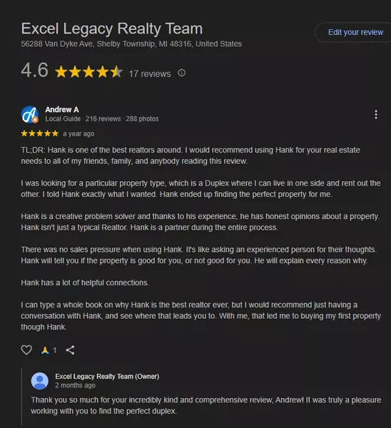Hello, my name is Hank Mendez, and I am the Associate Broker for the Excel Legacy Realty TeamโPowered by Real Estate One. Iโm excited to welcome you to my comprehensive real estate resource for southeastern Michigan. No other site provides more in-depth market insights and detailed local real estate information than what youโll find here. For buyers, I offer extensive area and neighborhood insights along with a robust property search tool to help you find the perfect home. For sellers, I provide market data and expert guidance to prepare, list, and sell your property efficiently.